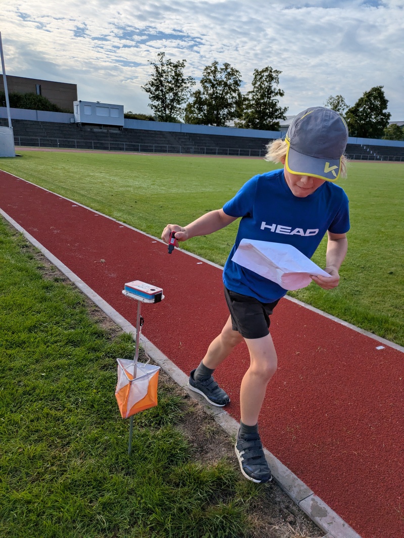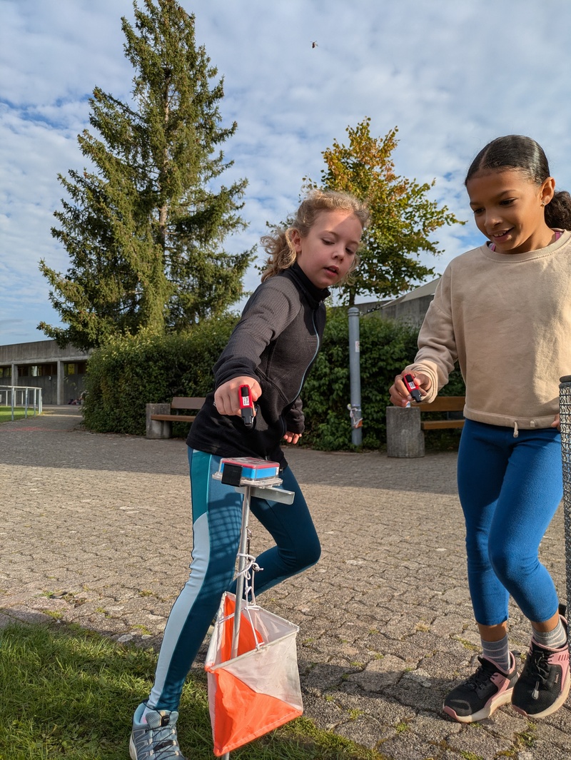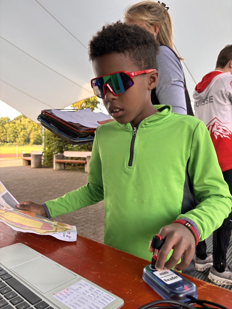 Nach einem gemeinsamen Warmlaufen lernten die Kinder die wichtigsten Werkzeuge des Sports kennen: eine Karte, die das Gelände abbildet, und ein elektronischer Badge, mit dem man die erreichten Posten bestätigt. Bald ging es an die ersten Probeläufe – und da merkten viele schnell: Einfach den «Gspändli» nachrennen führt nicht immer ans Ziel, denn jede Karte war anders.